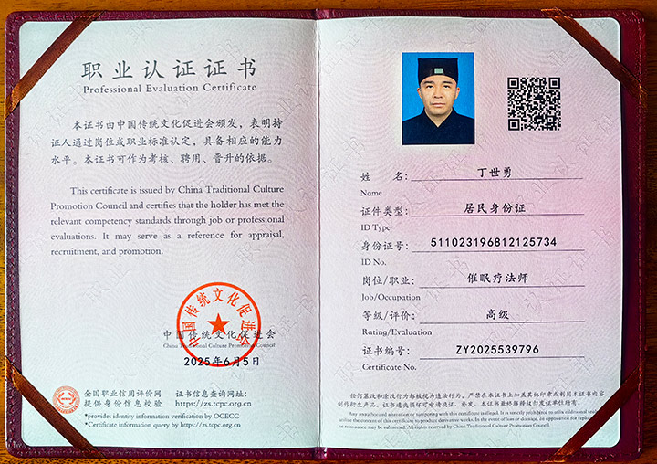 催眠療法師認(rèn)證證書(shū)